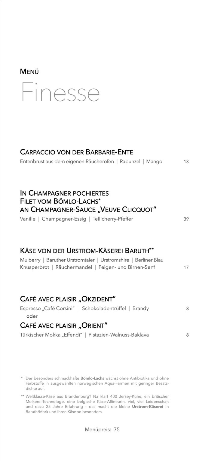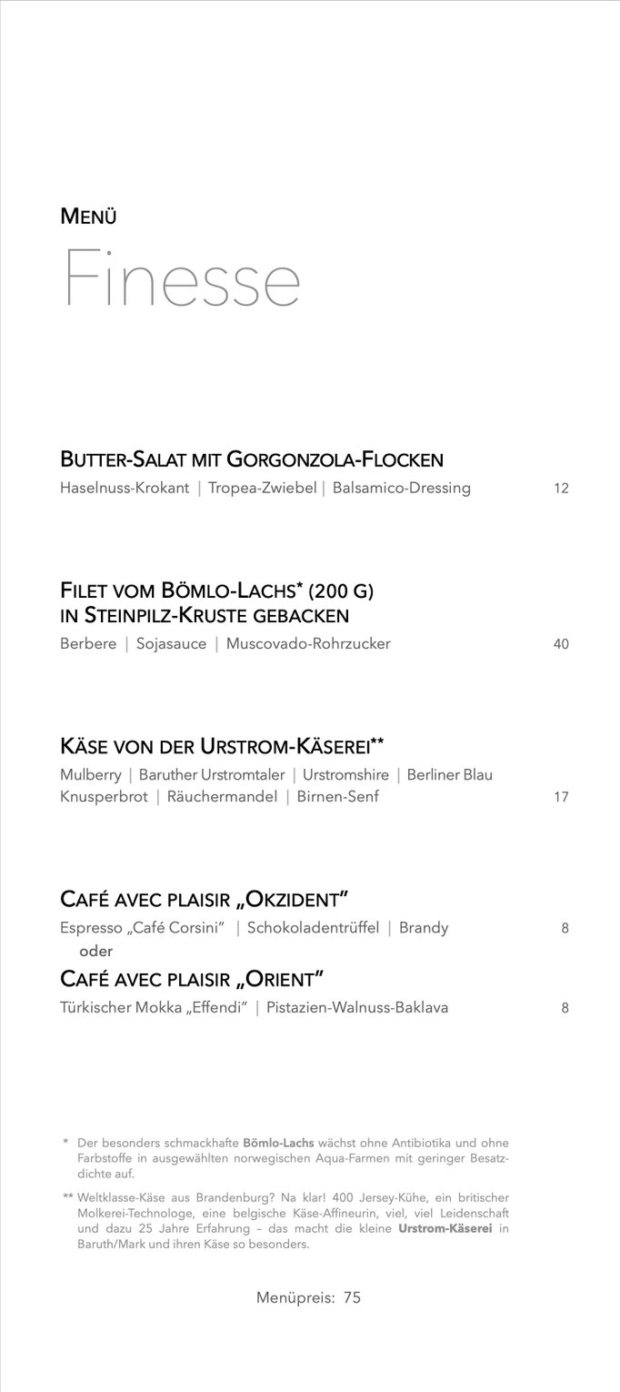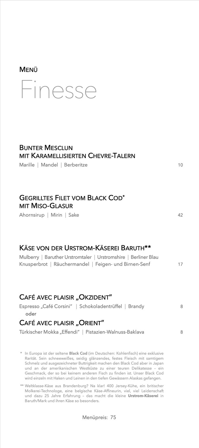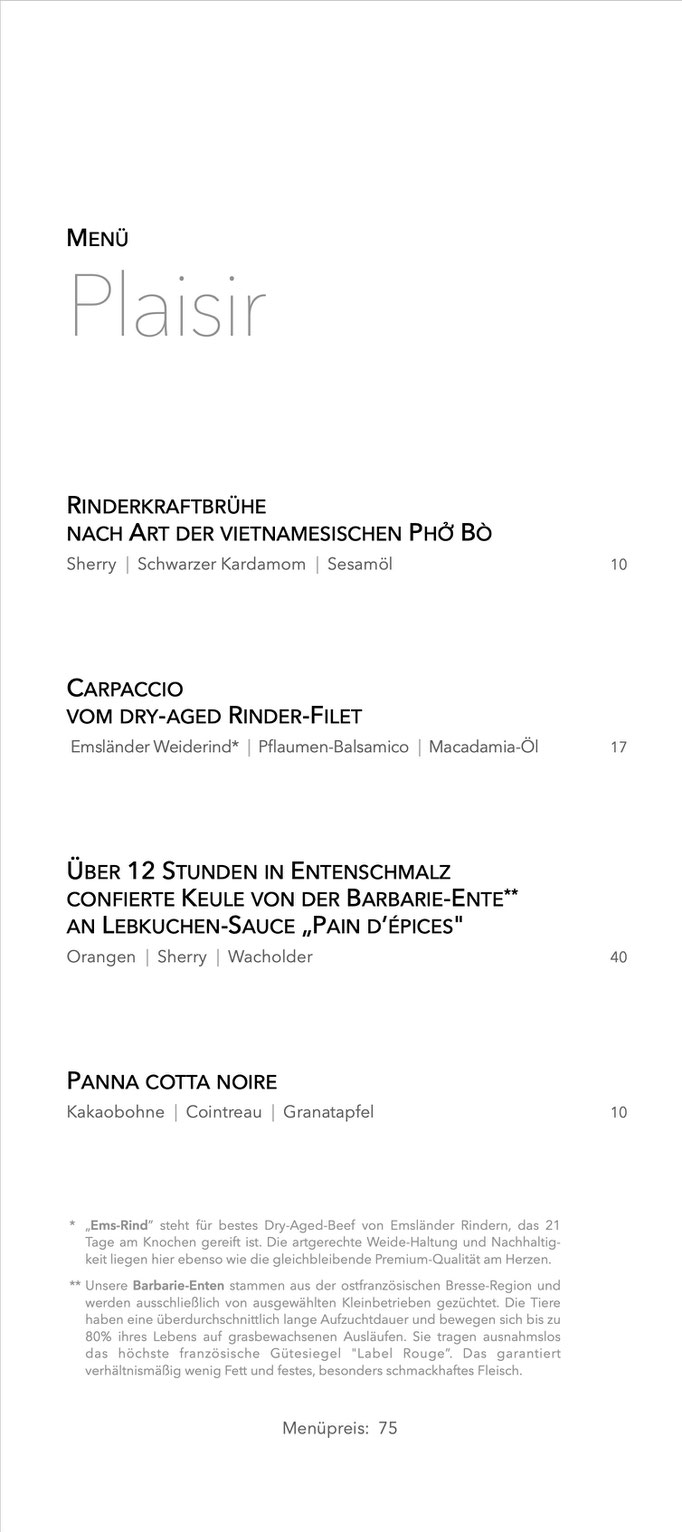 Jeden Monat stellen wir zwei neue 4-Gänge-Menü-Vorschläge zusammen, die jeweils eine kulinarische Geschichte erzählen (z.B. über eine besondere Zutat oder eine besondere Zubereitungsmethode). Gerne können Sie sich aber auch einzelne Gänge aussuchen und daraus Ihr Lieblingsmenü zusammenstellen – vom einzelnen Hauptgericht bis hin zum exklusiven 8-Gänge-Menü.